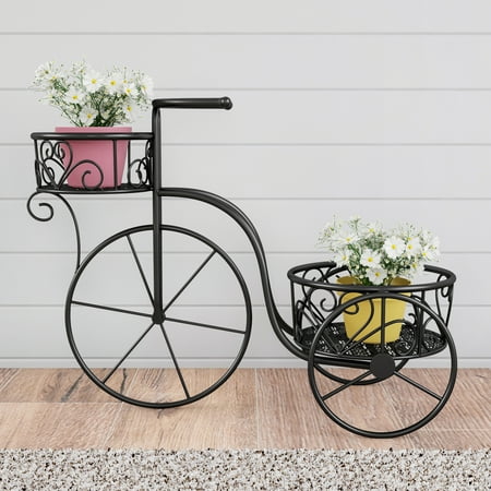 Tricycle Plant Stand– 2-Tiered Indoor or Outdoor Vintage Display by Pure Garden (Black