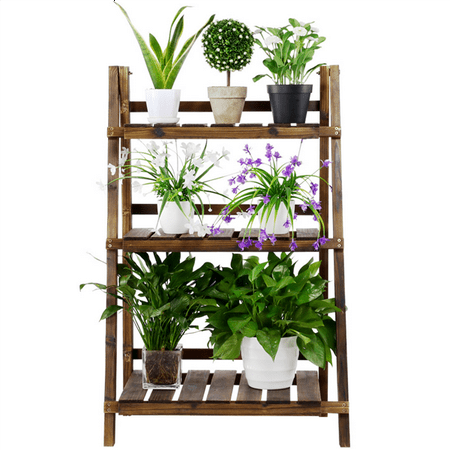 3 Tier Wood Plant Stand Folding Display Shelf Rack Indoor Indoors & Outdoors,Brown - Walmart.com